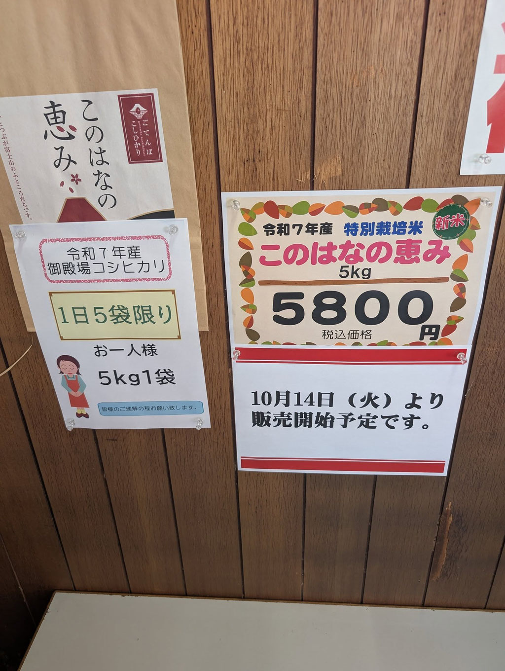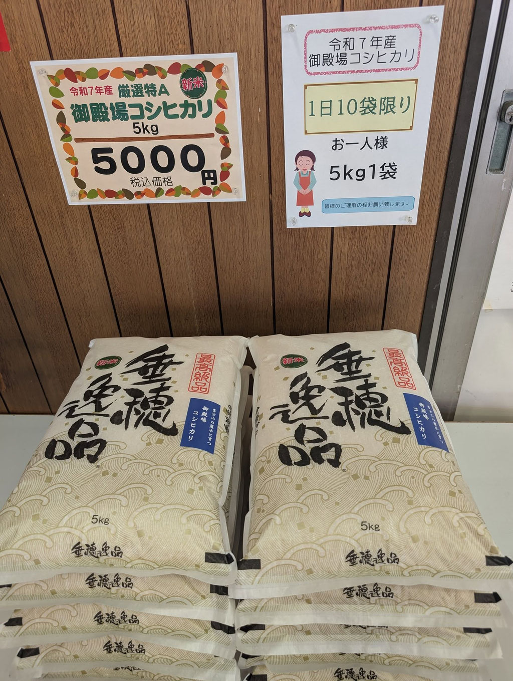 2025/10/08 令和7年産御殿場コシヒカリの販売を開始しました! 令和7年産御殿場コシヒカリの販売を開始しております。 数量の確保が難しいため店頭での販売のみとし、ネットでの販売は致しません。 大変申し訳ございませんがよろしくご理解の程お願いいたします。 尚、店頭ににて『一日数量限定』『在庫がある限り』の販売をしております。 お手数ですがお求めの方はご来店をお願いいたします。 (有)ナツガ 店主 tagPlaceholderカテゴリ: お知らせ